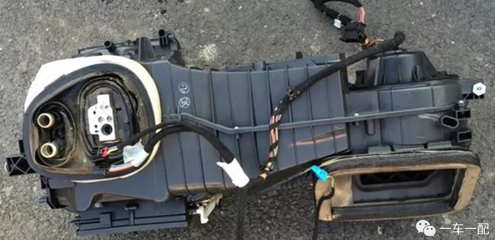 6.暖风水箱:发动机部分高温冷却液流经暖风水箱,加热暖风水箱周围空气,产生热空气。